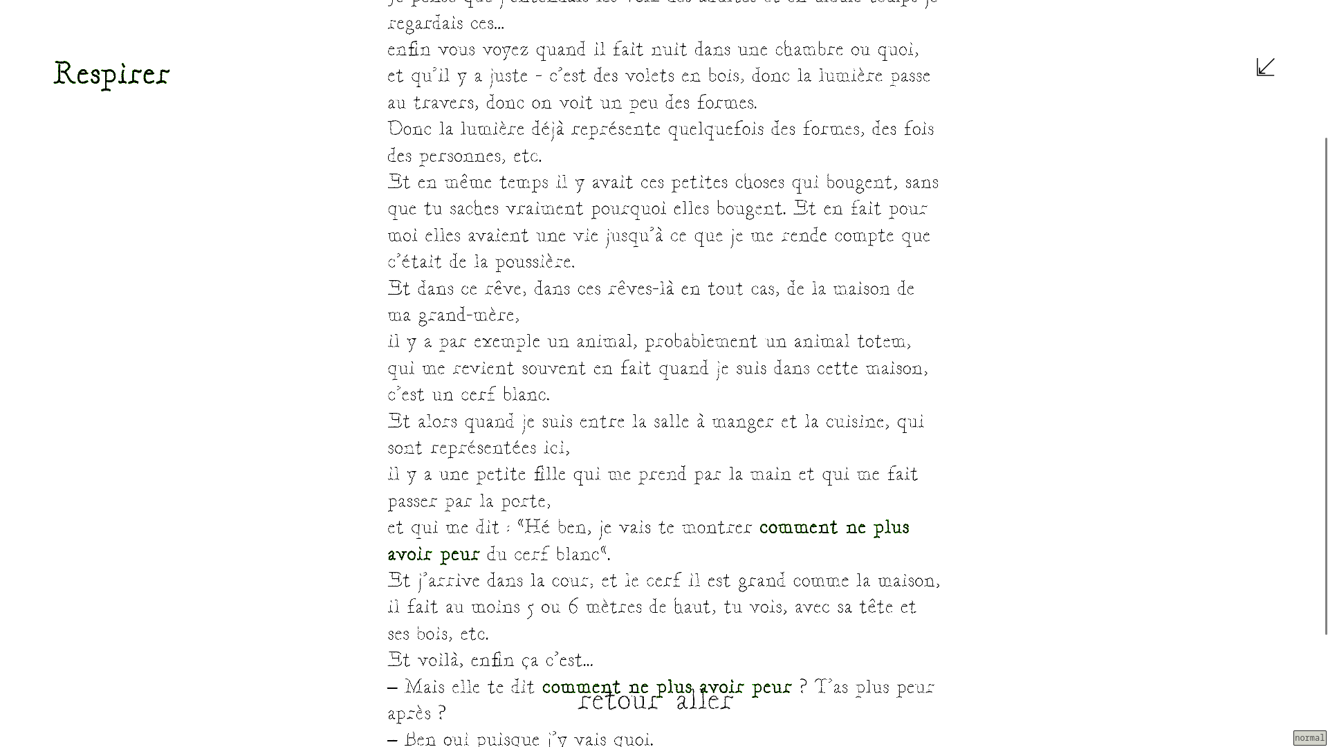 Built from drawings and audio recordings gathered during workshops made in summer 2024, the website is a multiple-choice narration interrupted by the recordings. Clicking the bold text reveals the continuation, but sometimes othe types of interactions happen.